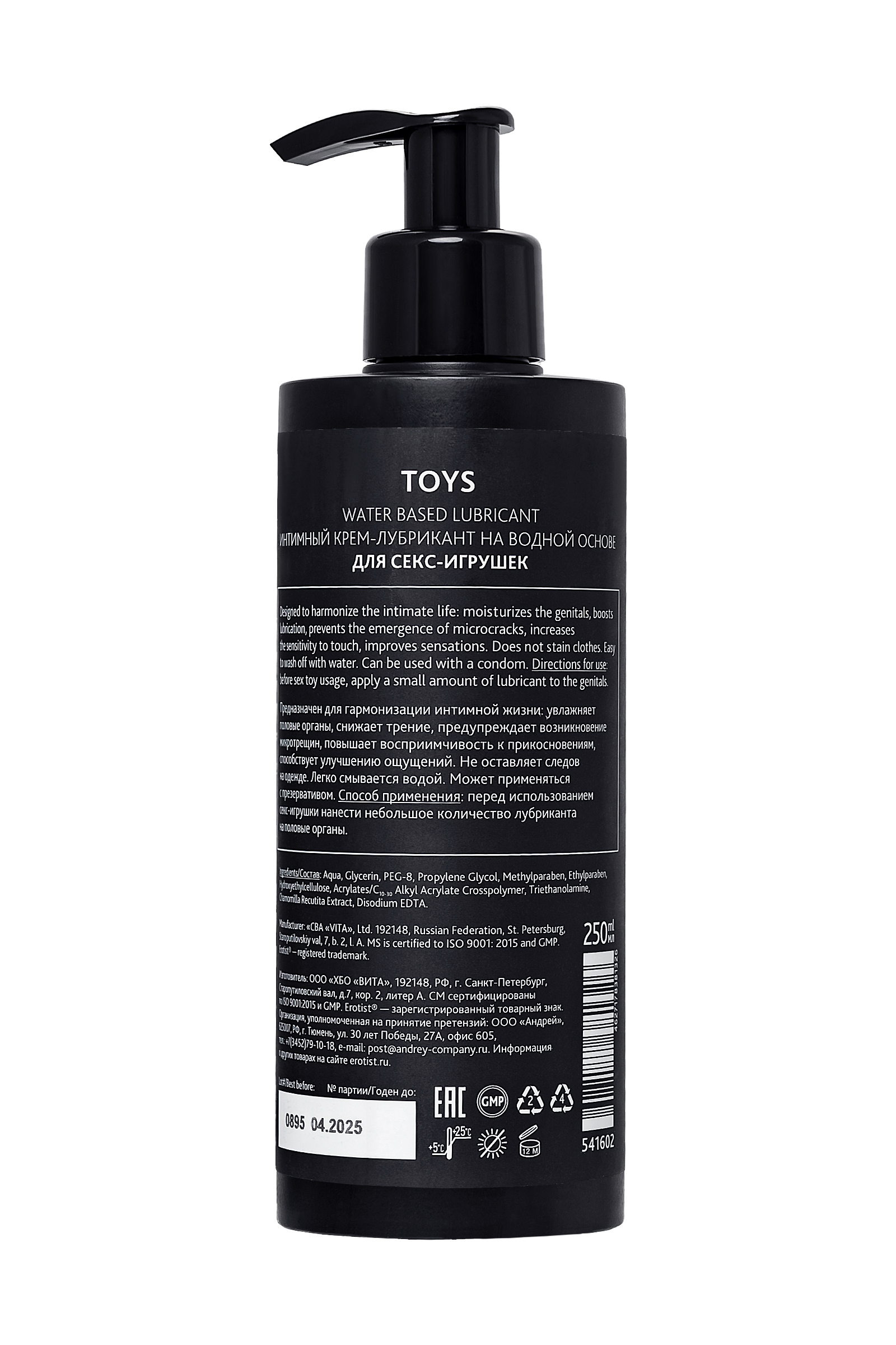 Что наша жизнь? Игра! А лубрикант Toys от Эротист — неотъемлемый атрибут идеальной интимной игры. Он снижает уровень трения, повышает степень наслаждения и бесследно исчезает после выполнения своих задач. Но самое большое его достоинство — лубрикант Erotist Toys можно использовать с секс-игрушками из любого материала! Лубрикант Erotist Toys имеет водную основу: он гипоаллергенен, совместим с презервативами, не оставляет следов и легко смывается водой.