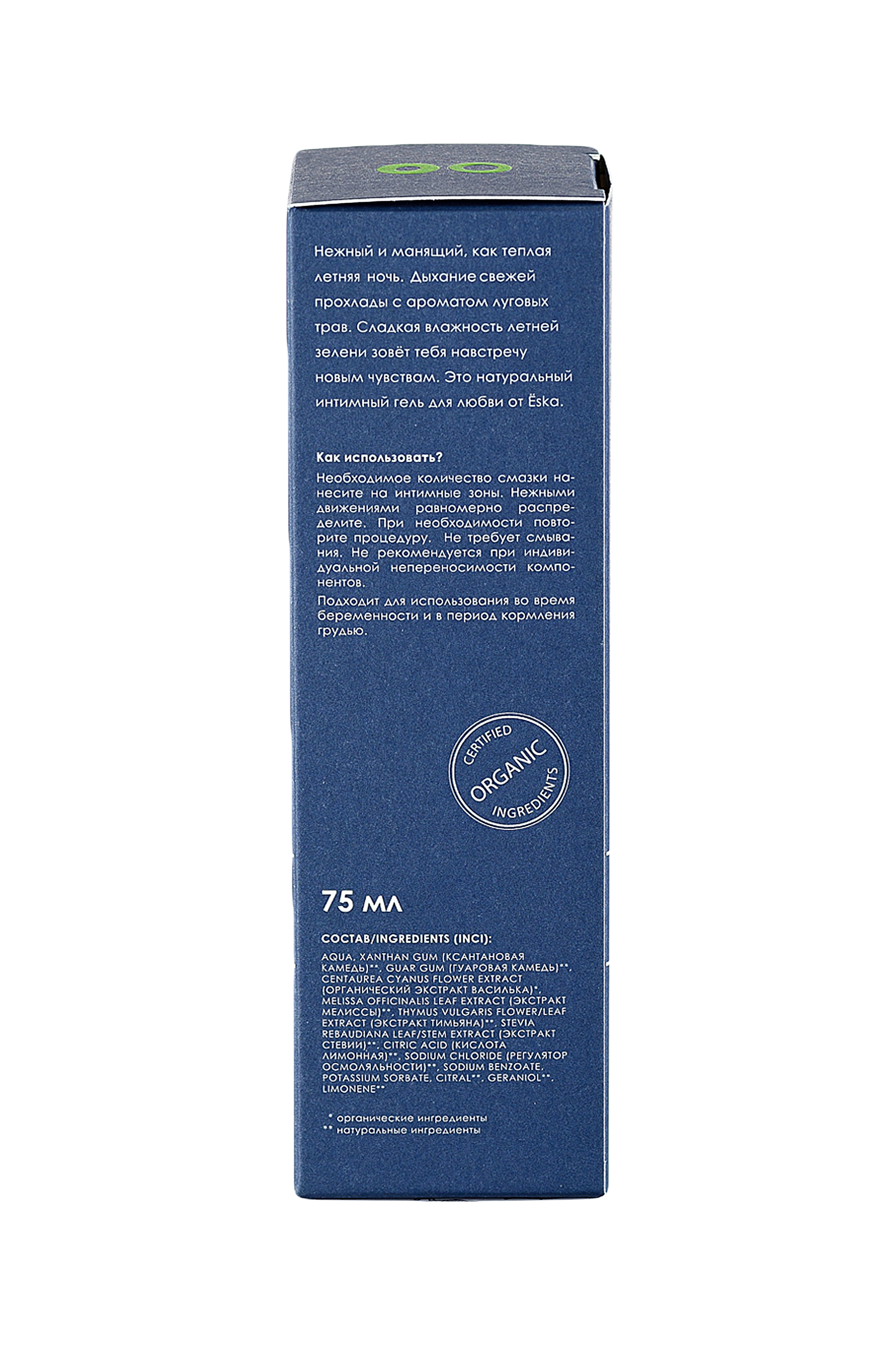 Попробуй вкус летней ночи с лубрикантом от бренда Ёска! Манящий и нежный, как теплая летняя ночь. Дыхание свежей прохлады с ароматом луговых трав. Сладкая влажность летней зелени зовет тебя на встречу новым чувствам. Это натуральный лубрикант для любви от Ёska. • 100% безопасная, чистая и натуральная формула. • Органический экстракт василька и мелиссы успокаивает, снимает сухость и раздражение. Обладает смягчающим и противовоспалительными свойствами. • Сладковато-лимонный аромат мелиссы пробуждает чувства. • Съедобная! • Стевия придает соблазнительную сладость. • VEGAN - формула не содержит ингредиентов животного происхождения или их производных. • Лёгкий гель имитирует естественную смазку женщины. • Не липкая, не оставляет следов, не требует смывания. • Гипоаллергенная. • Сбалансированный pH, 4,3. • Совместима с презервативами и секс-игрушками. • Универсальна для всех видов любви. Подходит для орального, вагинального и анального секса. Как использовать? Необходимое количество смазки нанесите на интимные зоны. Нежными движениями равномерно распределите. При необходимости повторите процедуру. Не требует смывания. Не рекомендуется при индивидуальной непереносимости компонентов. Подходит для использования во время беременности и в период кормления грудью. Состав Ёska Летняя ночь - лубрикант на водной основе: • Ксантановая камедь широко используется в пищевой продукции. Натуральный, безопасный, экологически чистый гелеобразователь. Не позволяет влаге испаряться. В смазке для получения прозрачной, шелковистой текстуры. Не раздражает даже чувствительную кожу. • Гуаровая камедь - натуральный загуститель, обладает увлажняющим и влагоудерживающим свойством. Получают камедь из семян растения гуар, известного также, как гороховое дерево. • Органический экстракт василька мягко действует на слизистую, успокаивает, снимает воспаление и раздражение. Наполняет сухую слизистую влагой. Дубильные вещества, содержащиеся в цветках, помогают бороться с инфекциями и бактериями. Подходит для чувствительной кожи. • Экстракт мелиссы успокаивает нежные ткани, отлично снимает зуд, раздражение и сухость. Оказывает противовоспалительное действие, заживляет и стимулирует кровообращение. Богат флавонойдами, которые обладают антиоксидантными свойствами. Придает смазке яркий травянисто-лимонный аромат, пробуждающий воспоминания о теплой летней ночи. • Экстракт тимьяна обладает выраженной противогрибковой и антимикробной активностью. Известен своим ранозаживляющим, противовоспалительным и антиоксидантным действием. Применяется в борьбе с вагинальными инфекциями. Оказывает местный обезболивающий эффект, снимает раздражение. • Экстракт стевии природный подсластитель. 0% калорий и 100% натуральный, абсолютно безопасный способ подсластить вашу жизнь. В отличии от сахара, стевия не является питательной средой для бактерий и грибков. Обладает противомикробным, ранозаживляющим и противовоспалительным действием. Она содержит в себе мощную комбинацию антиоксидантов, включая витамин С, витамин Е, флавоноиды, калий, кальций, железо, магний, цинк и фолат, которые благоприятно действуют на весь организм в целом. • Лимонная кислота помогает поддерживать оптимальный уровень рН, является естественным консервантом. • Хлорид натрия – регулятор